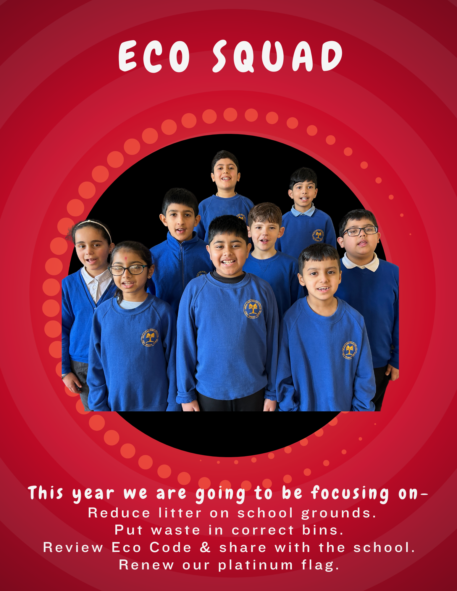 This is our Pupil Action Group - Eco Squad, with their message about recycling and reducing waste.