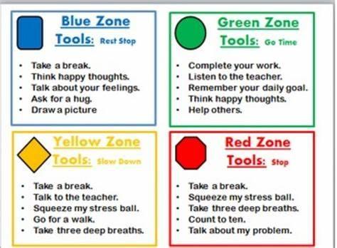 Blue Zone: low level of energy; not ready to learn; feels sad, sick, tired, bored, moving slowly.